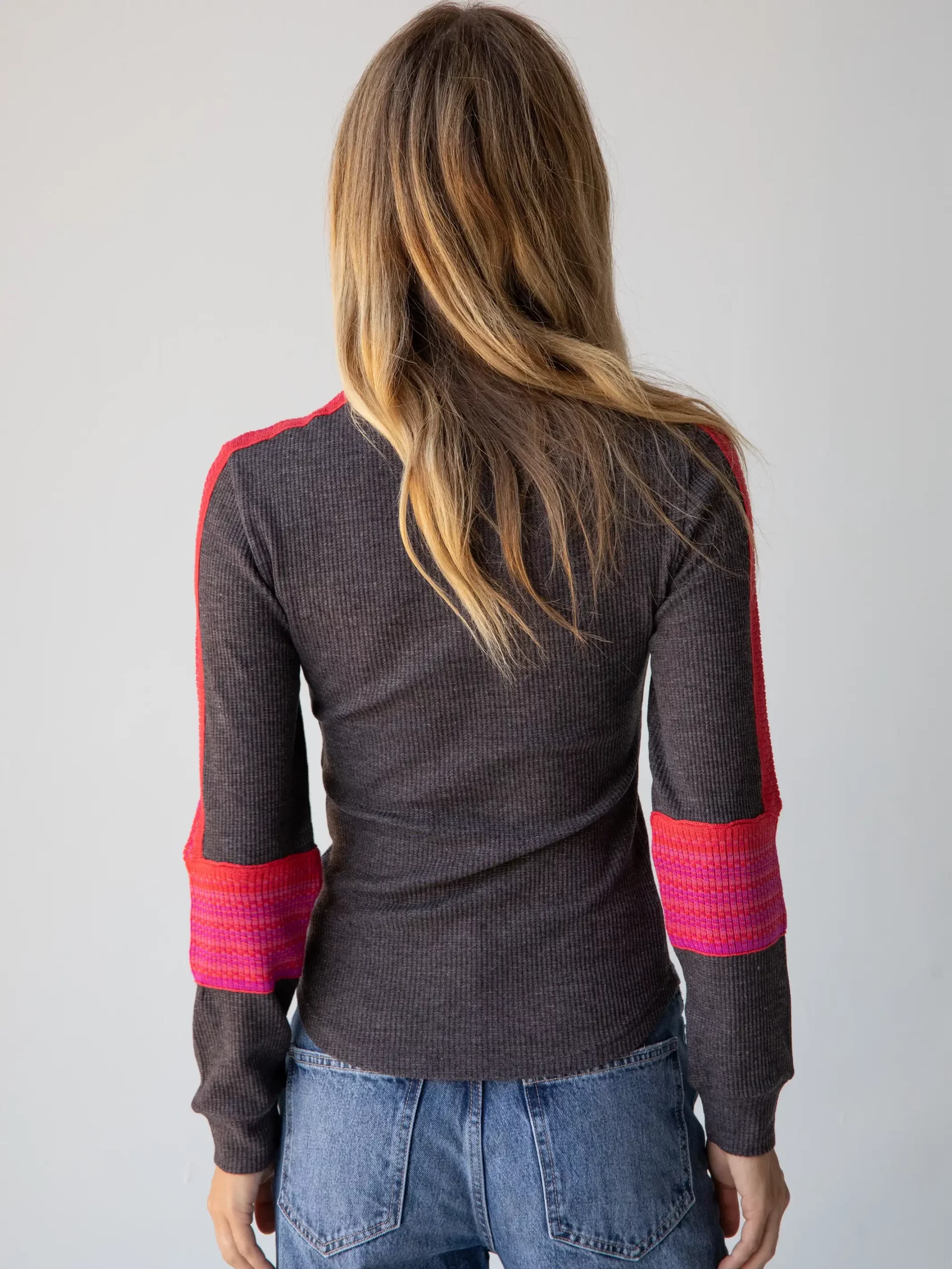 The London Trim Top is not your average long-sleeve top! Inspired by our popular Knit Trim Sweatshirt, this top features vibrant raw edge stitching on the sleeves for a super cool and unique boho-chic look. The London Trim Top is form-fitting, making it the best layering piece ever to effortlessly elevate your outfit. It also looks super stylish and cute on its own! Embrace your free-spirited self and enjoy the comfort and style of the London Trim Top. If you prefer a looser fit, we recommend sizing up.