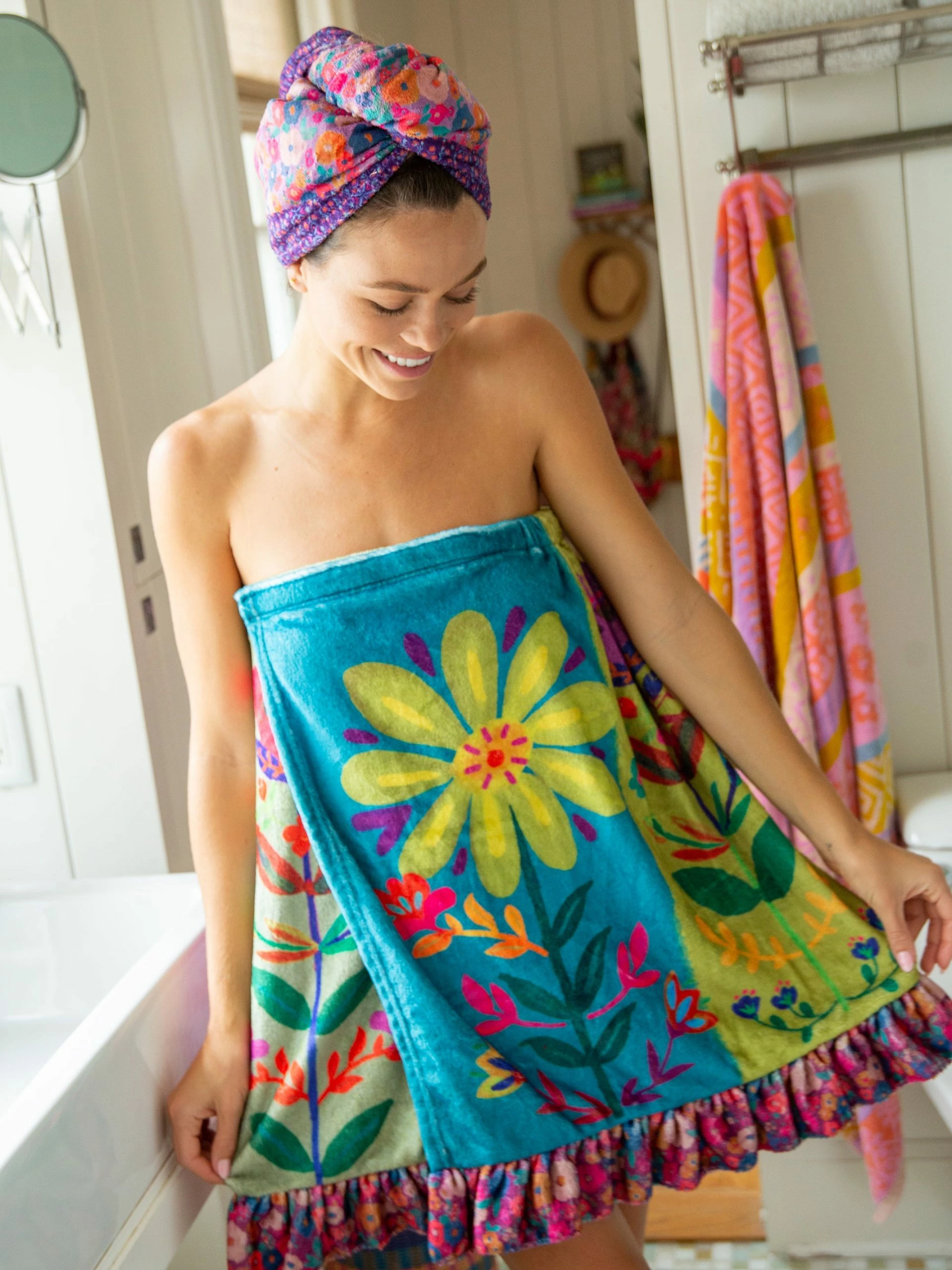 Hair fly-aways and frizzies are a thing of the past with our Microfiber Hair Towel Wrap! Now you can dry your hair faster and with less damage in a super cute way. Wrap up your wet hair while you do other things: apply makeup, paint your nails, empty the dishwasher, pick out your favorite maxi dress… It even secures in the back with a button, so it doesn’t come undone. We love using ours every day to make getting ready in the morning go super fast, and of course they’re available in several boho floral prints. You would make anyone happy by gifting this Hair Towel Wrap. Think about pairing it with one or two of our hair accessories!