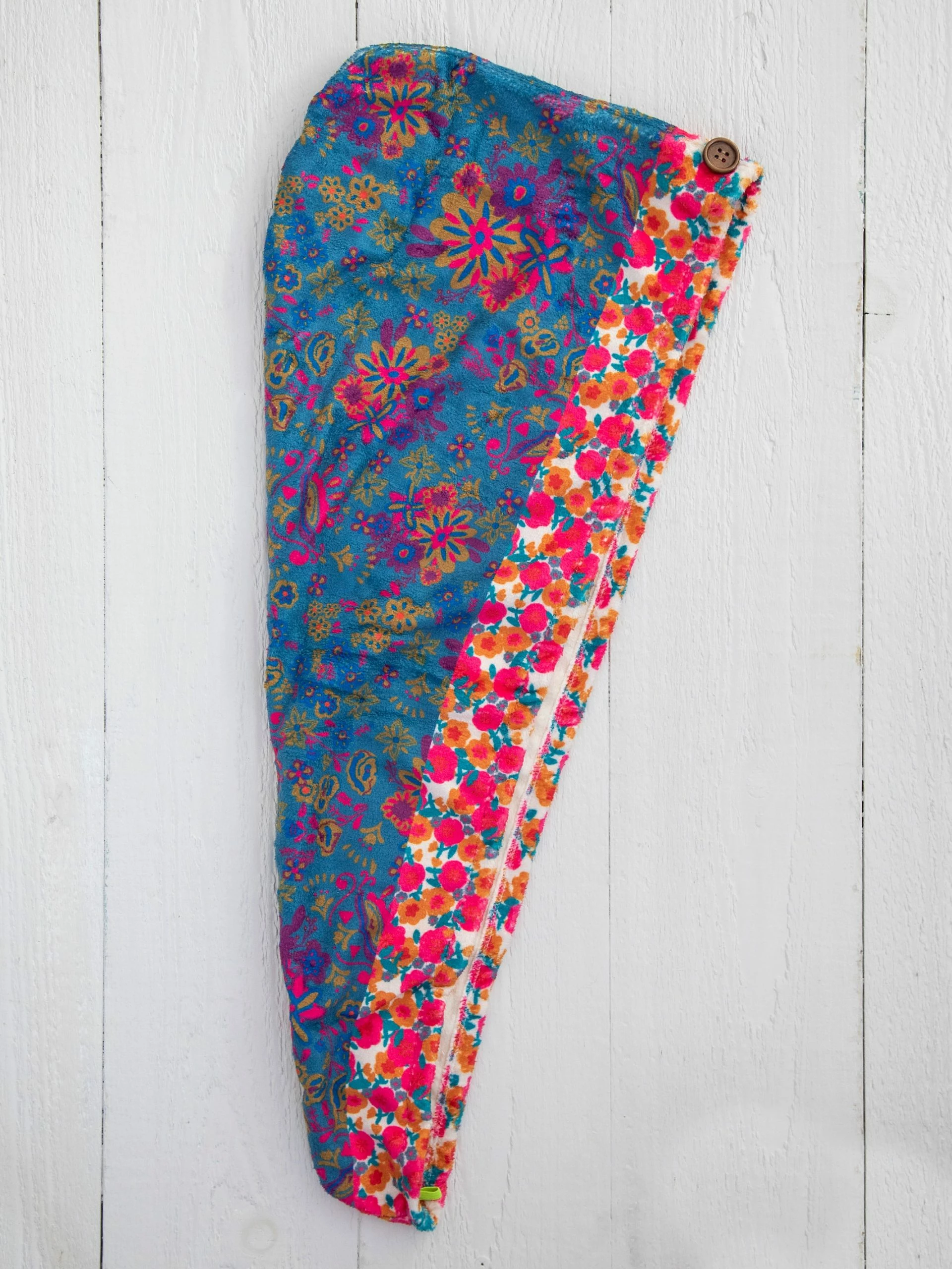 Natural Life Microfiber Hair Towel Wrap – Teal Floral