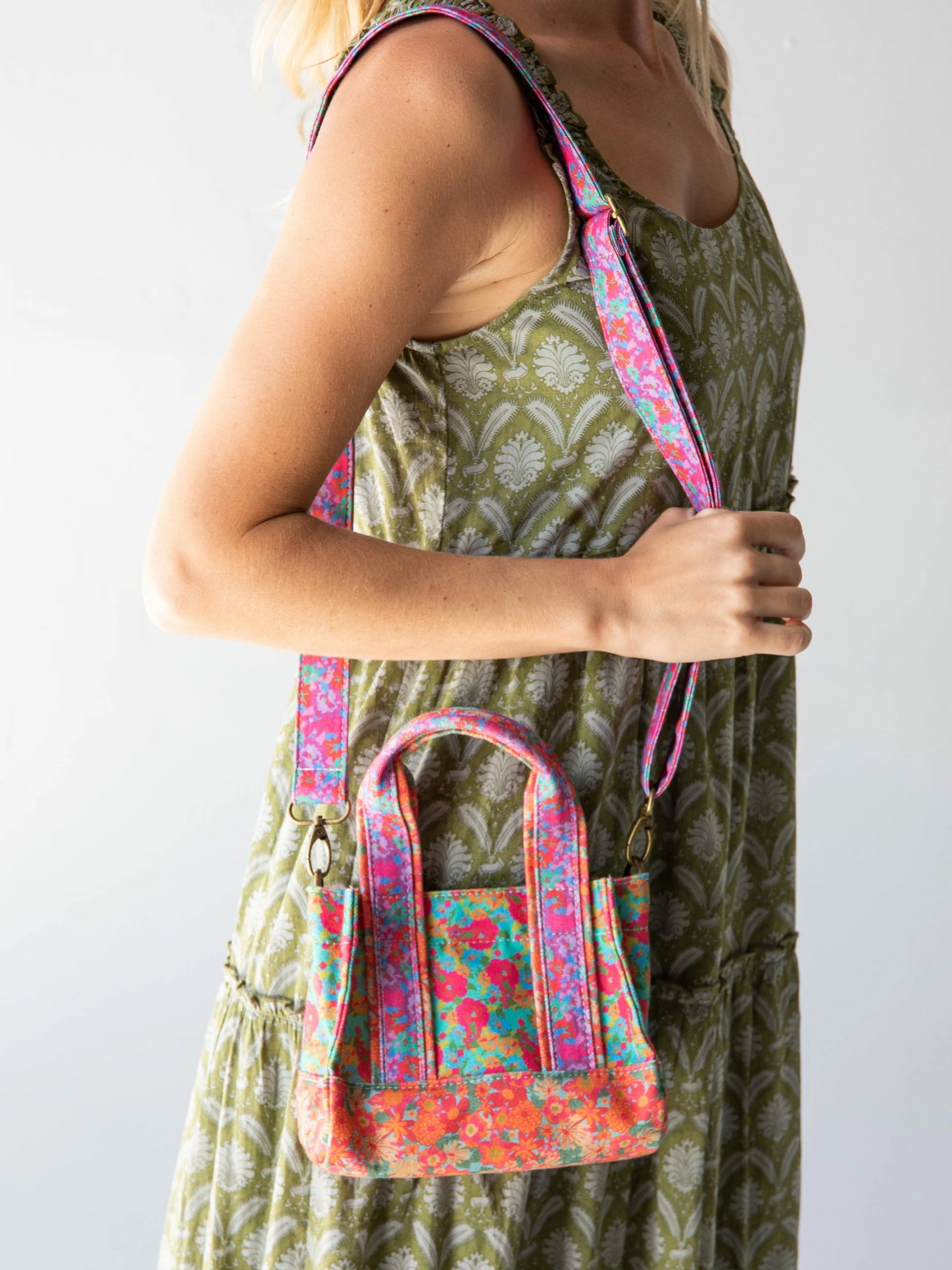 This Mini Tote is too small to contain all the cuteness it has! This printed canvas Mini Tote has not one, not two, but FOUR mixed prints for super cute boho fun! Slip the double handles over your arm for that classic satchel look or choose to wear it crossbody with the detachable strap to keep your hands free! The mini front pocket can hold your hand sanitizer, keys, or cosmetic essentials. The inside will make you smile with the girly floral print, and it even stands up when not in use! We love carrying this wee little bag on vacation too! Reach for this enchanting purse when you want the perfect accessory for your outfit, but you don’t need to carry EVERYTHING with you in a larger bag!