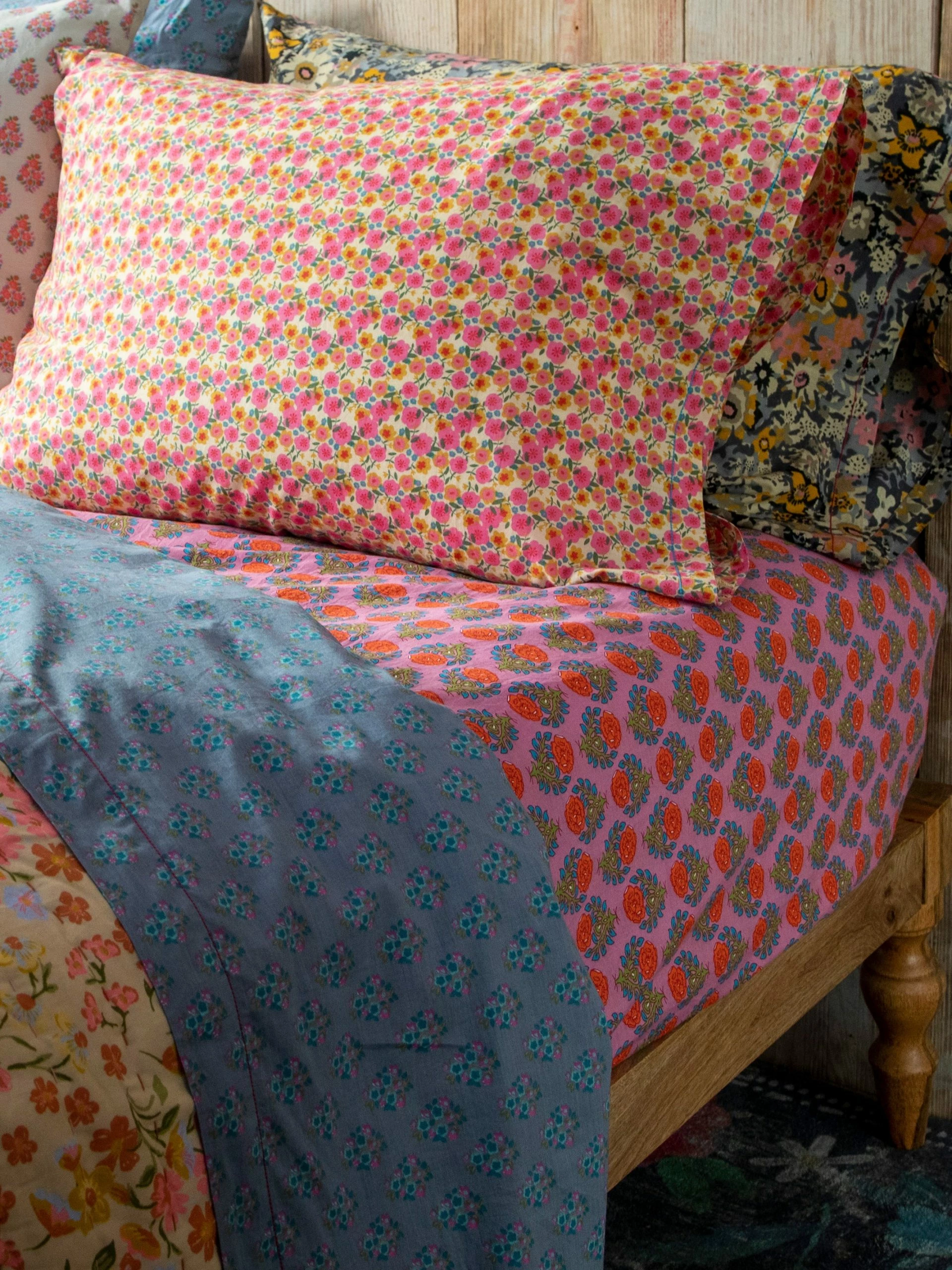 Create a relaxing bedtime haven with our Mix and Match Sheets! Slipping into buttery softness at the end of long day is a feeling that can’t be beat. Whether you like your sheets to match or love to get creative – adorn your bohemian bed with sheets that fit your fun personality! This flat sheet even has contrasting trim and stitching for extra cuteness! Our 100% cotton Mix and Match Sheets coordinate with each one of the darling designs. Buy several prints and make your bed different each time you change your sheets or choose your favorite print and keep it matchy-matchy! On top of being adorable, they wash beautifully and just keep getting cozier and softer with every wash. They come sweetly tied up with a ribbon for gift giving or for gifting yourself a good night’s sleep. Sweet dreams!