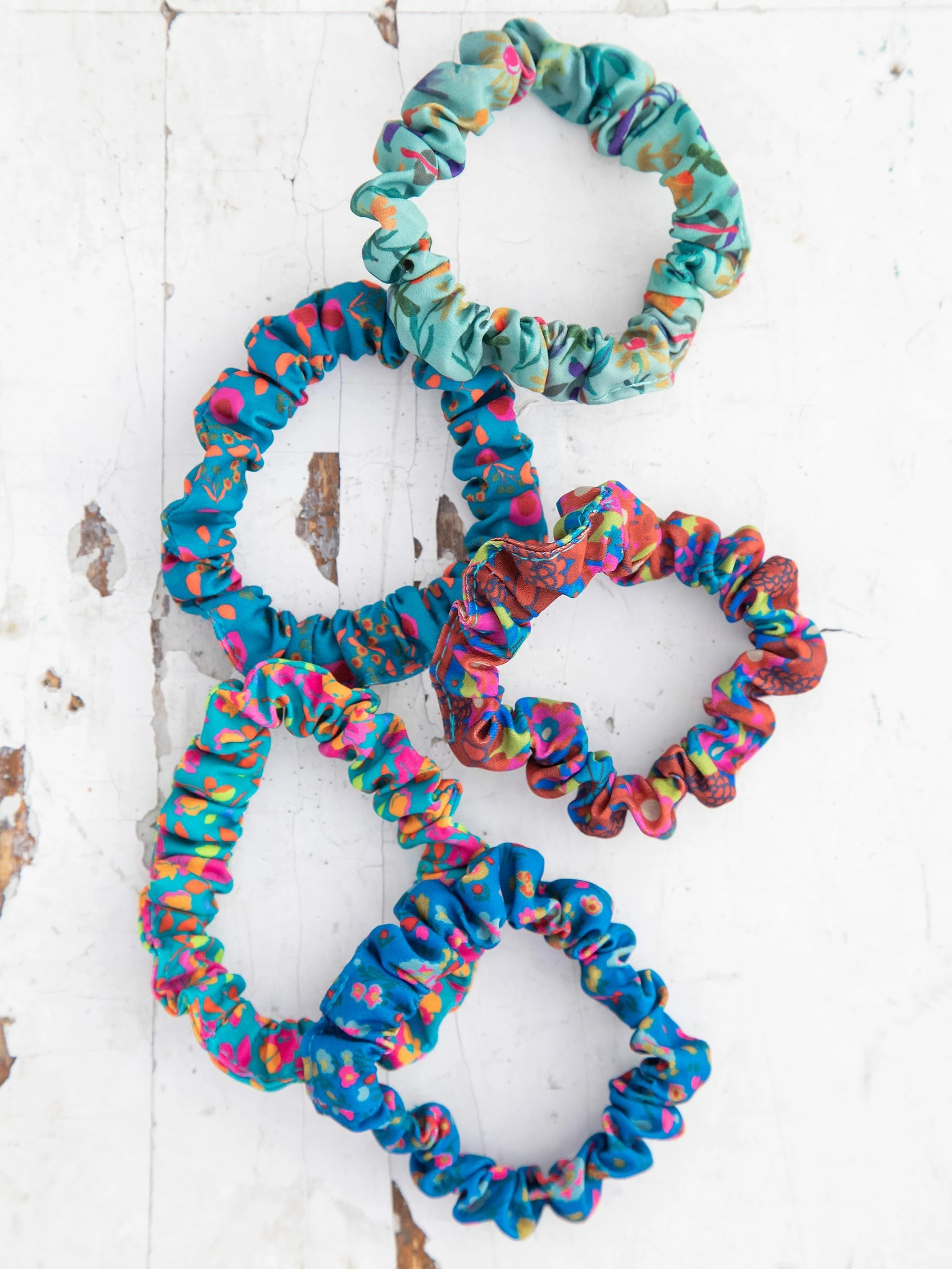 Scrunchies are invaluable and you never know when you might need one! This set of five has been designed in the cutest patterns and coordinating colors. They’re super soft and gentle on your hair. Get rid of hair elastics or ties that can cause hair breakage and damage. Once you use a scrunchie, you’ll never go back! Pop one on your wrist to have when you need it. Leave one in your car and handbag for quick hair fixes! You might need more than one set…so check out the other colors we have available. These make a great gift alone or paired with one of our other hair accessories! Your hair should be happy too!