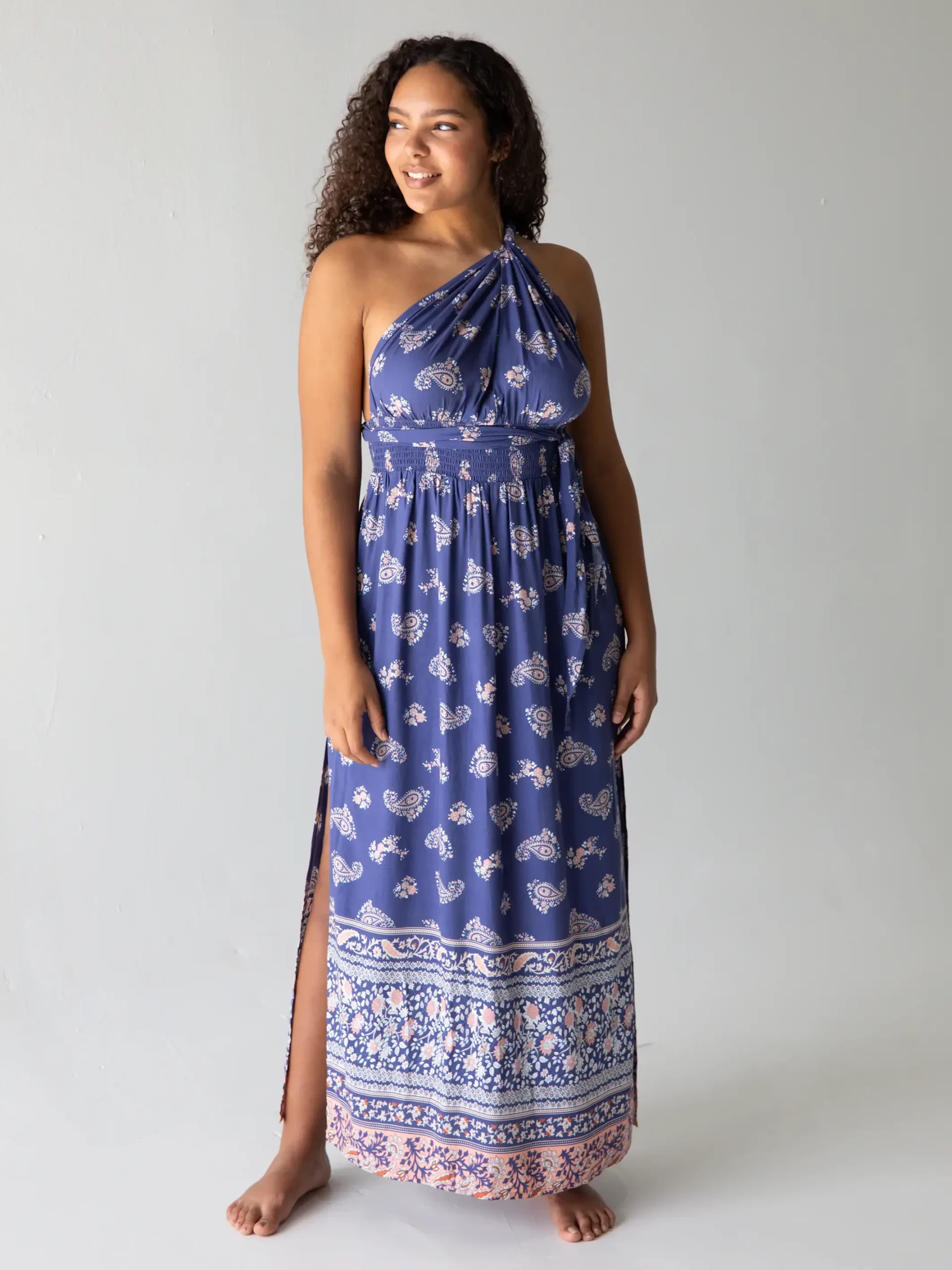 Is it a halter dress or a strapless dress? A backless dress? ANY way you tie it, it’ll always be the prettiest maxi dress… The best part is that you get to choose! Two side slits let the soft cotton fabric billow around you while you walk along the shore or dance at a wedding. Graceful and elegant, but fun and flirty at the same time! Effortless and versatile styling with just a twist of the ties!!