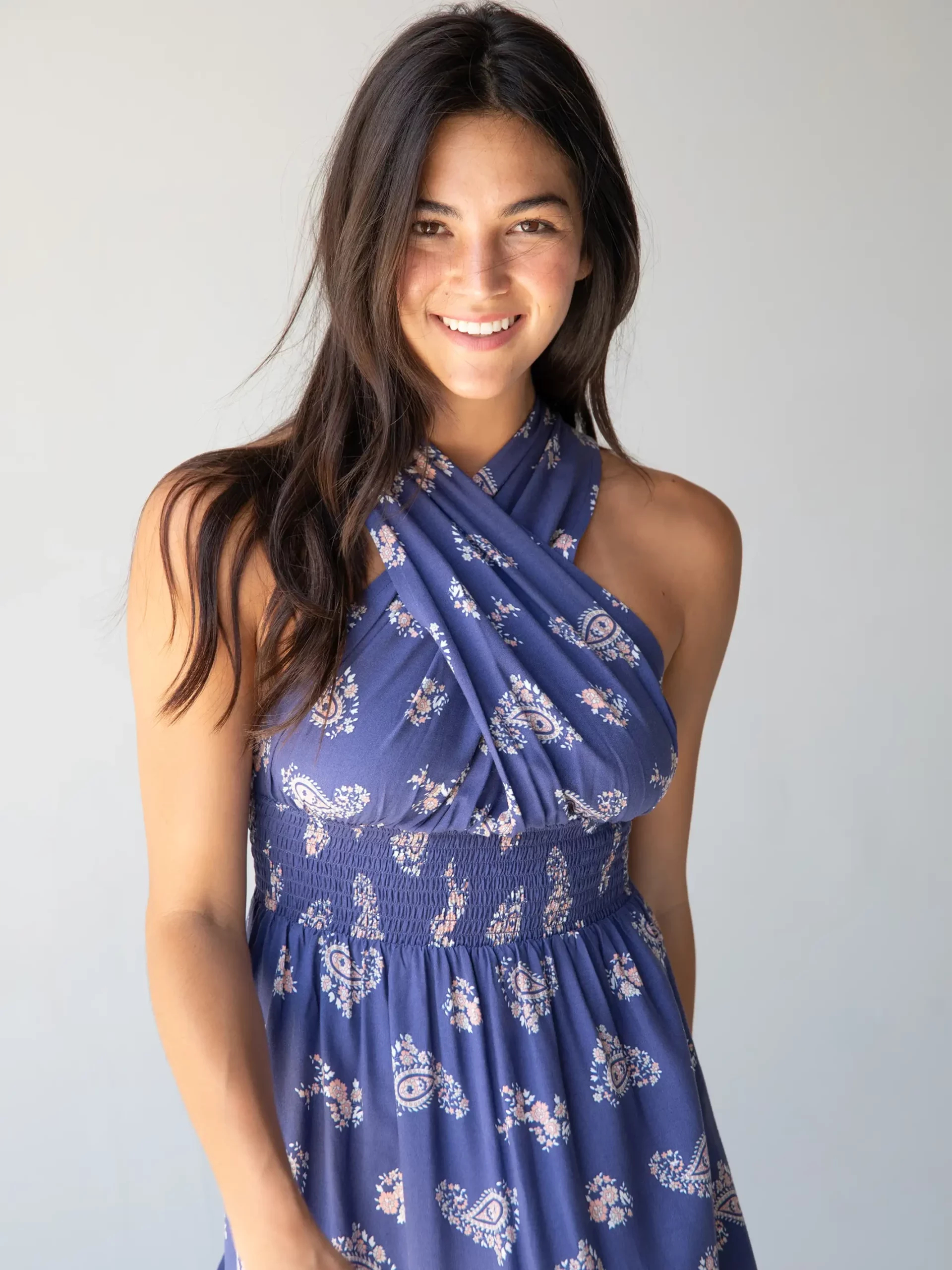 Natural Life Nadia Halter Dress – Navy Paisley