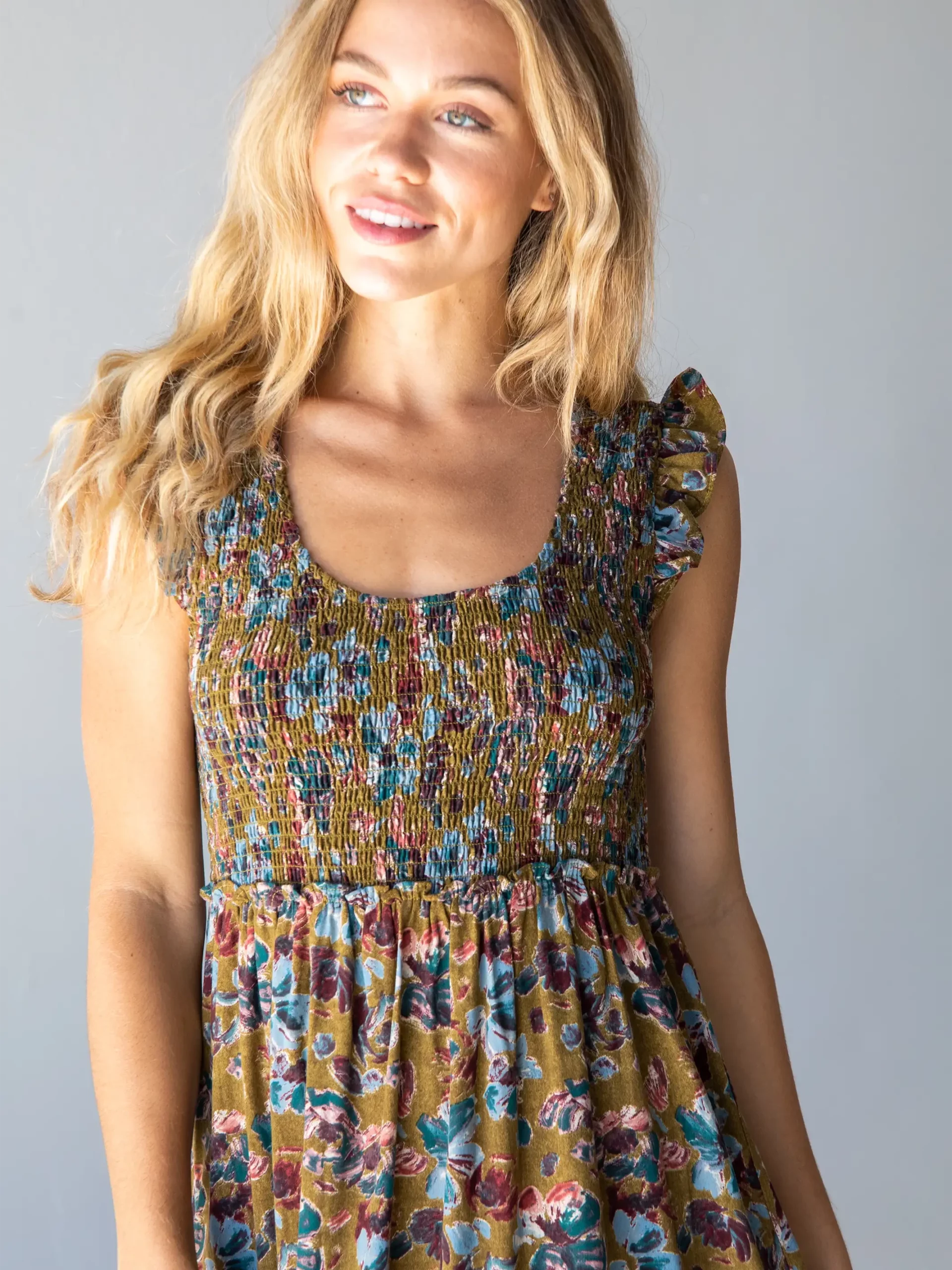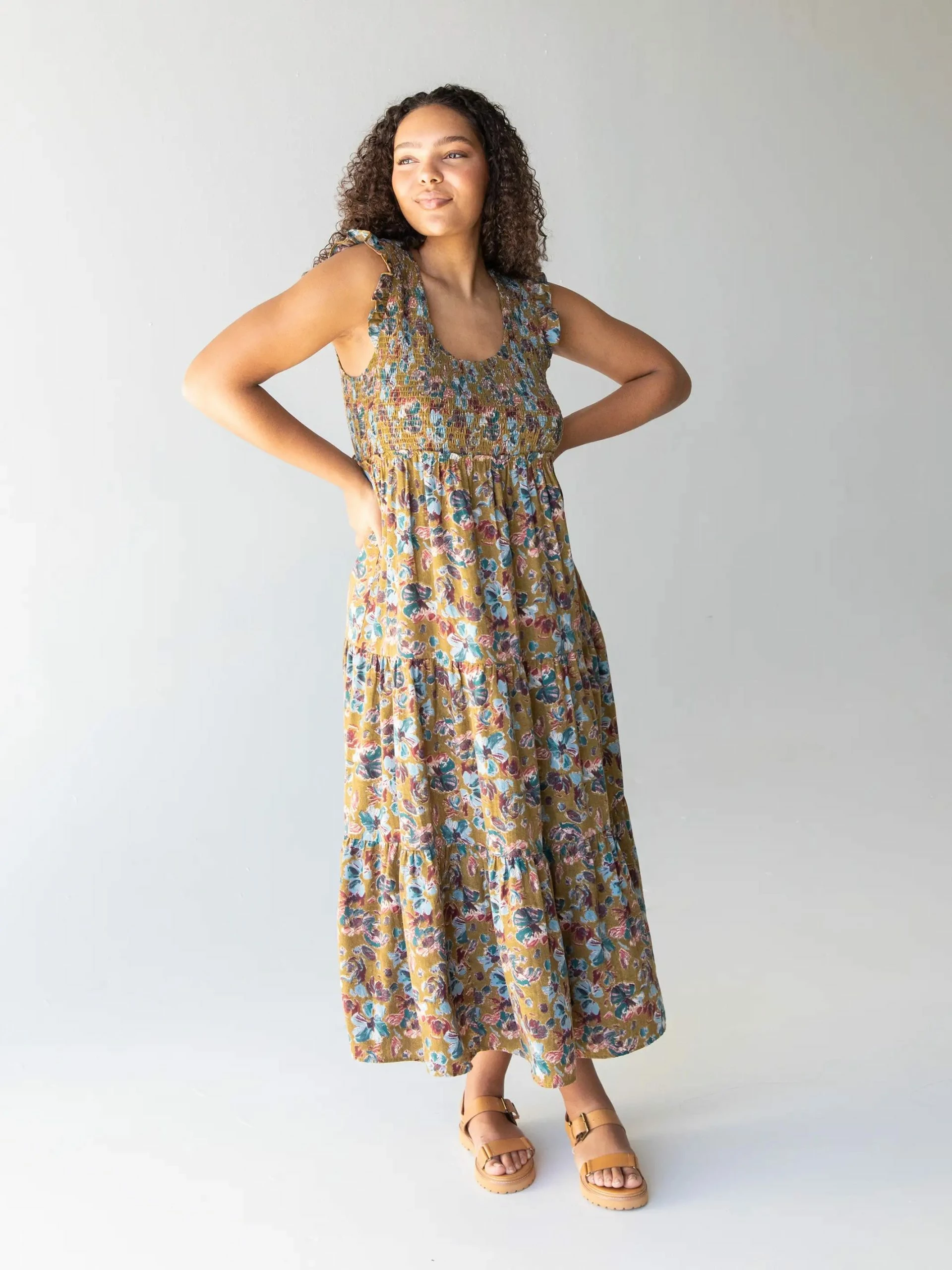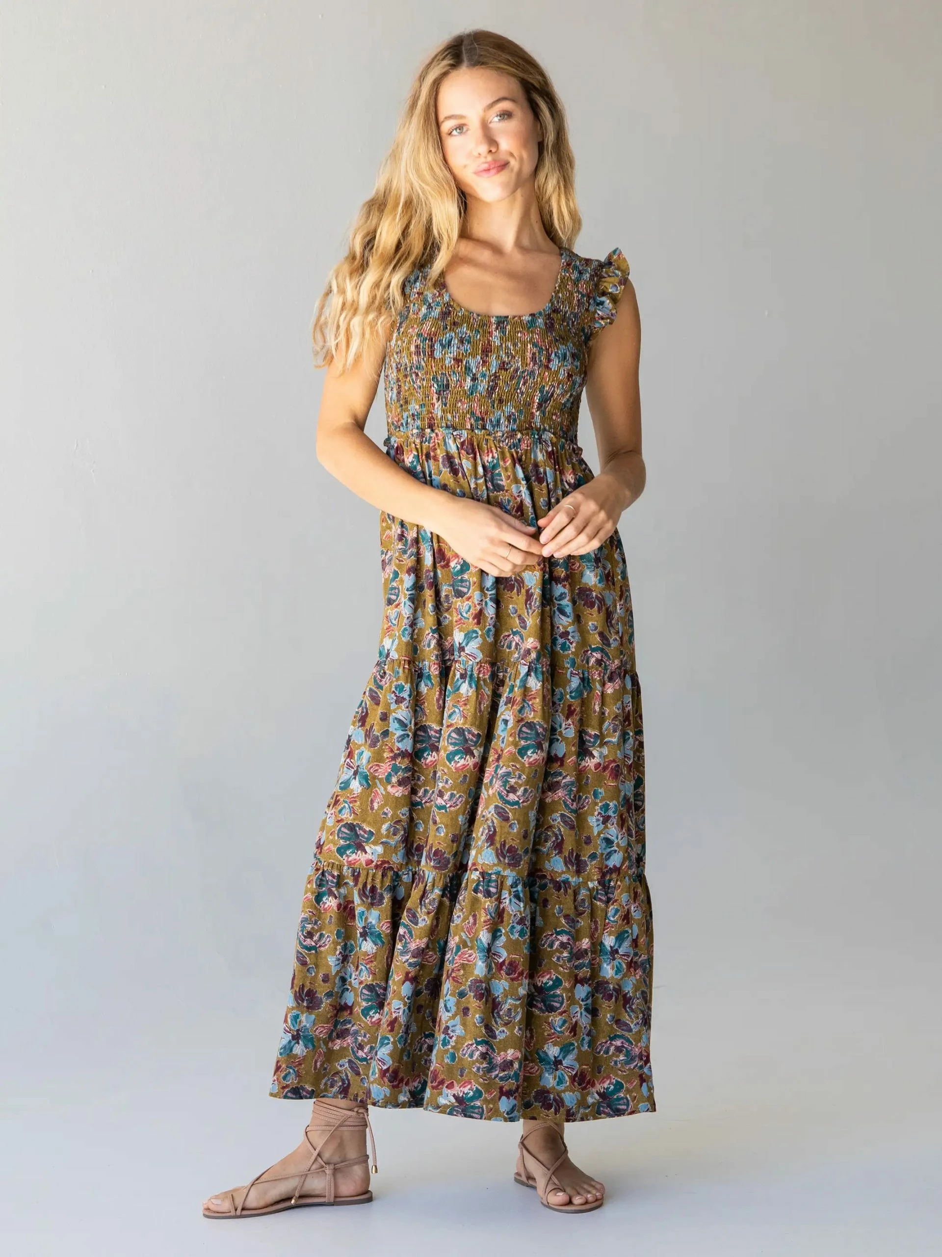 Natural Life Olivia Smocked Maxi Dress – Olive Floral