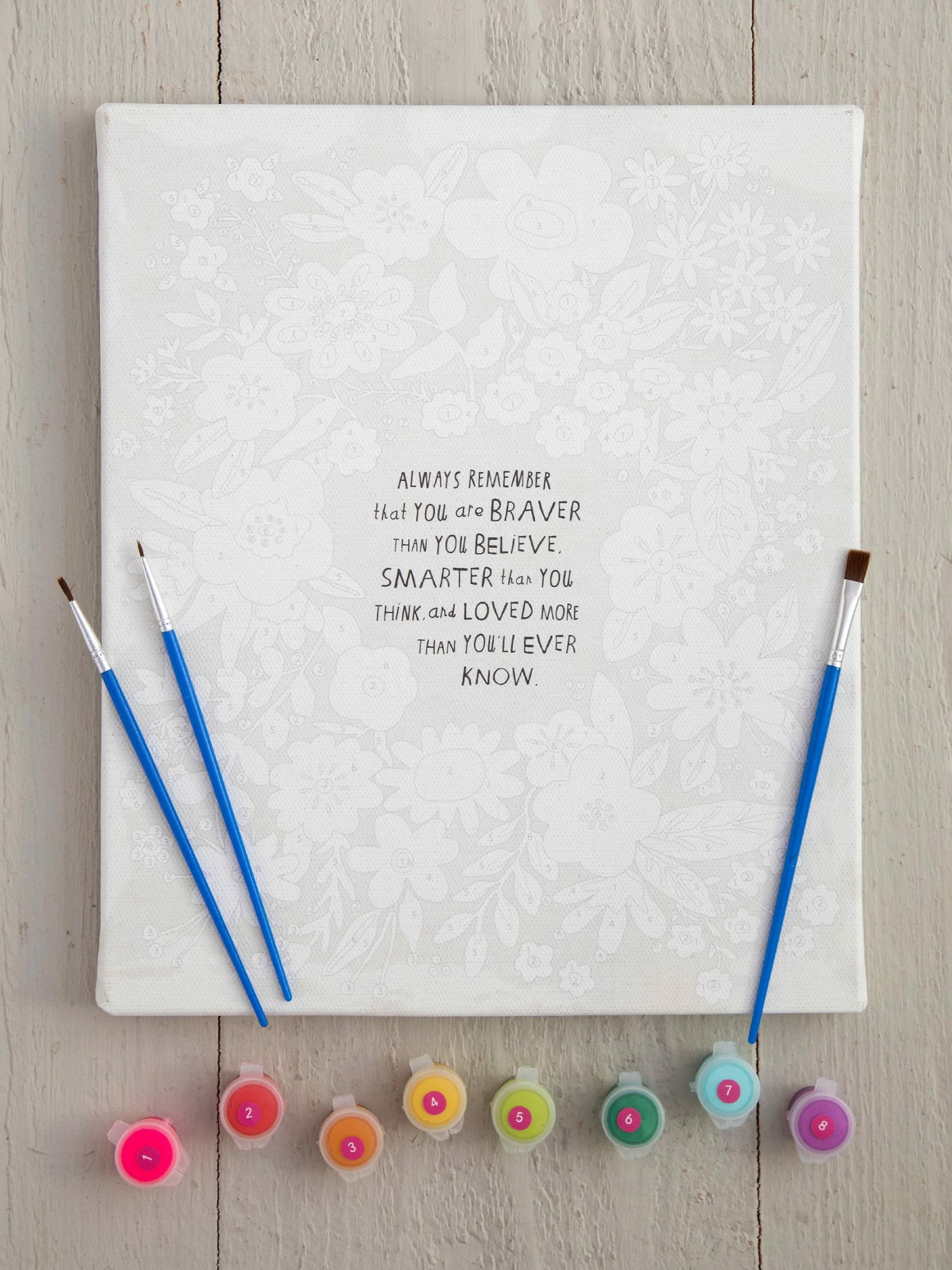 We made a Paint By Numbers Kit! It’s the perfect creative hobby for anyone, even if you haven’t held a paintbrush in years! Everything you need is included… 8 beautiful paint colors, 3 brushes and the art comes on a mounted canvas that you can easily hang up right away! You can even use coffee and a sponge to stain the edges for a vintage look! It’s so therapeutic and fun to create your own little work of art to hang anywhere!