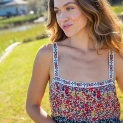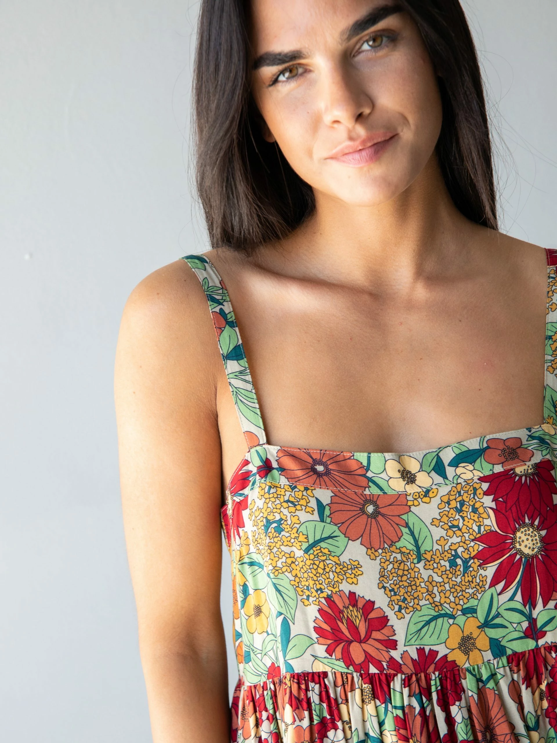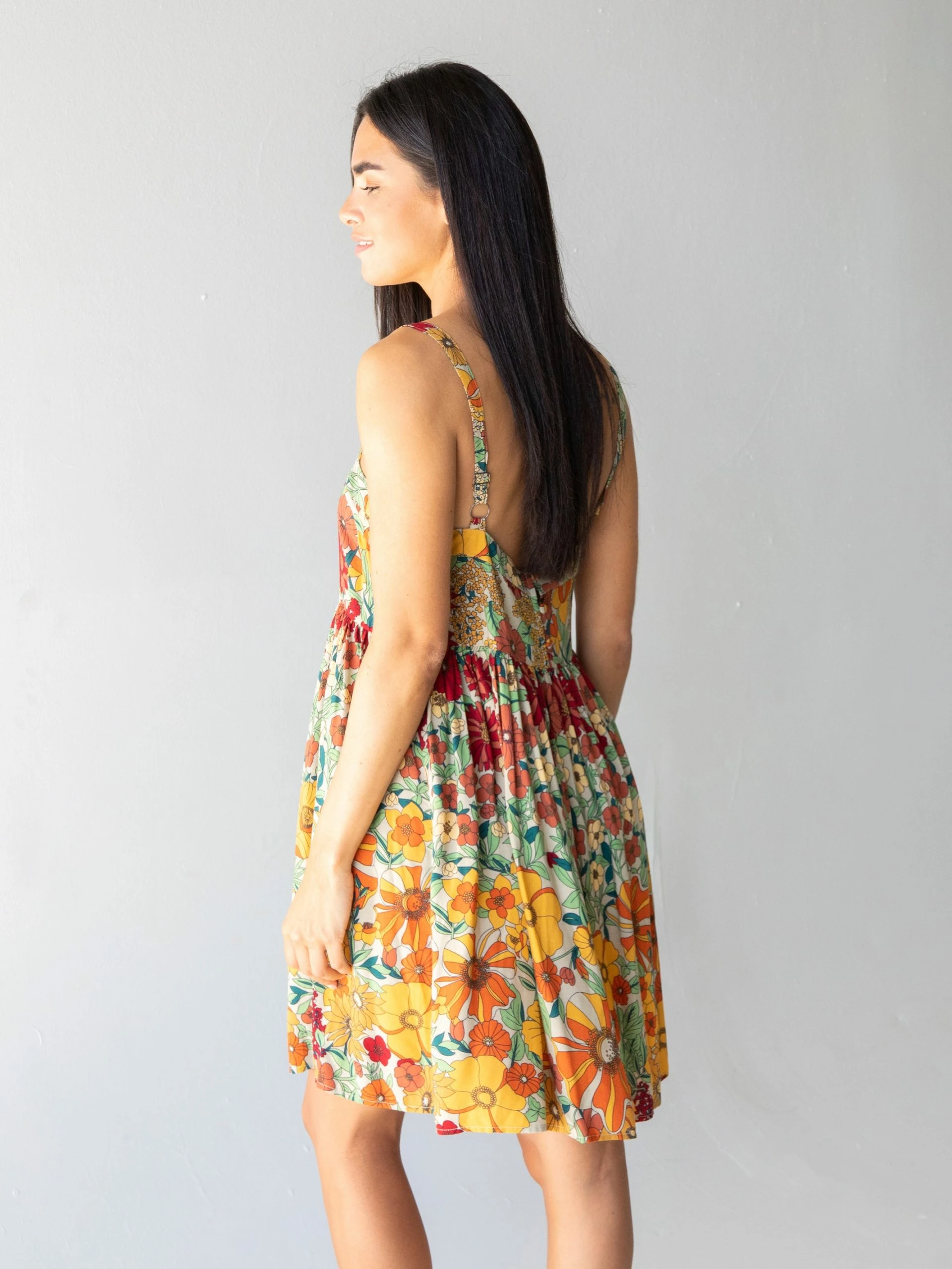 If you like our Patti Maxi Dress, but you also like a shorter length – we got you! Here’s everything you love about the Patti Maxi Dress but in a MINI style! The empire waist bodice with delicate covered buttons, adjustable straps, and comfy material – it’s all there! We didn’t miss a thing! We just transformed a customer favorite to a fun short length to give you more options! We like to call it our super easy-to-wear summer dress! Summertime and sandals are perfect with this floral dress –it’s the ultimate vacation go-to! However, when fall comes back around, pair it with tall boots and a denim shirt jacket. A versatile wardrobe makes life more fun!
