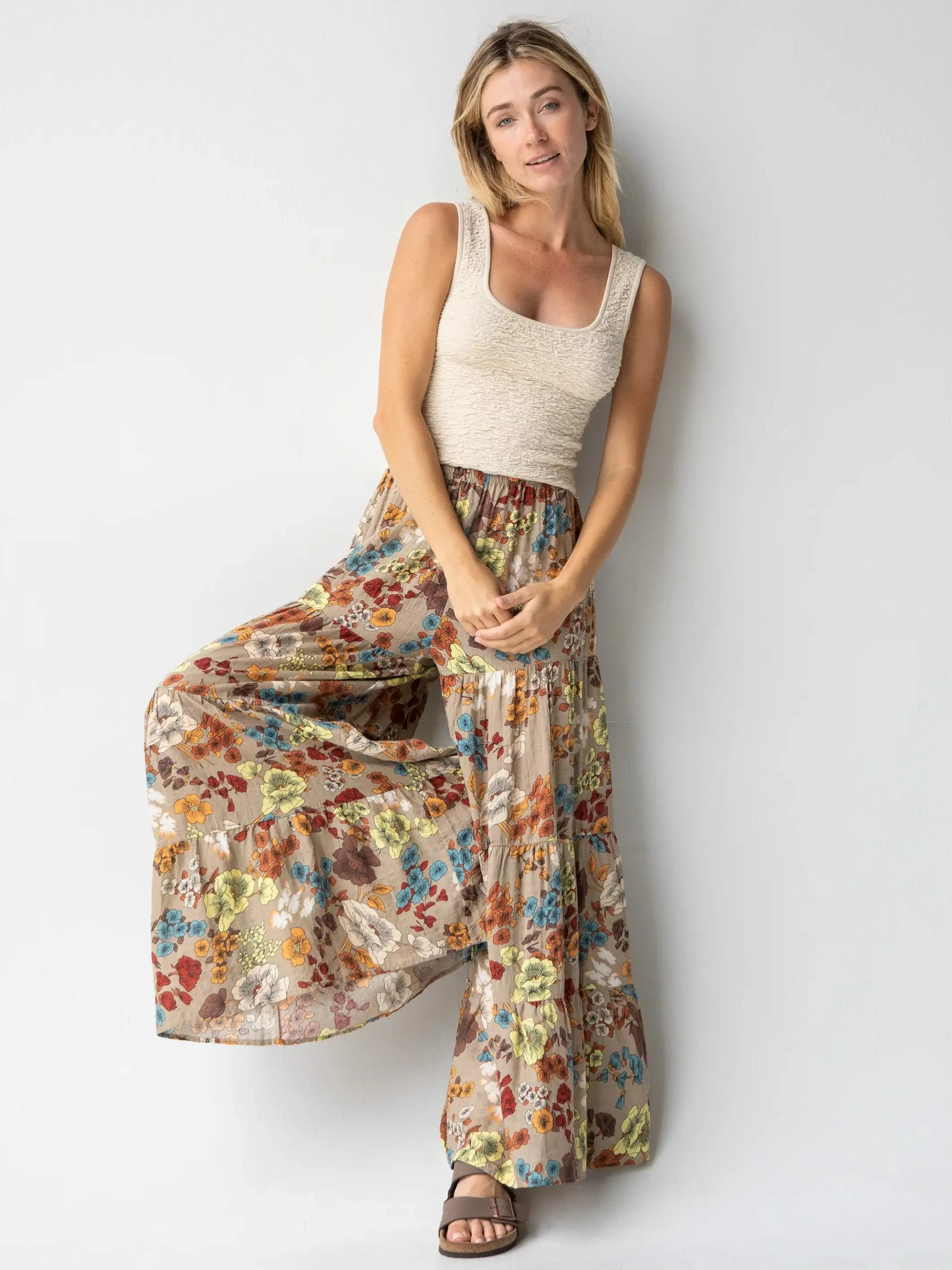 Natural Life Patti Palazzo Pant – Tan Cream Floral