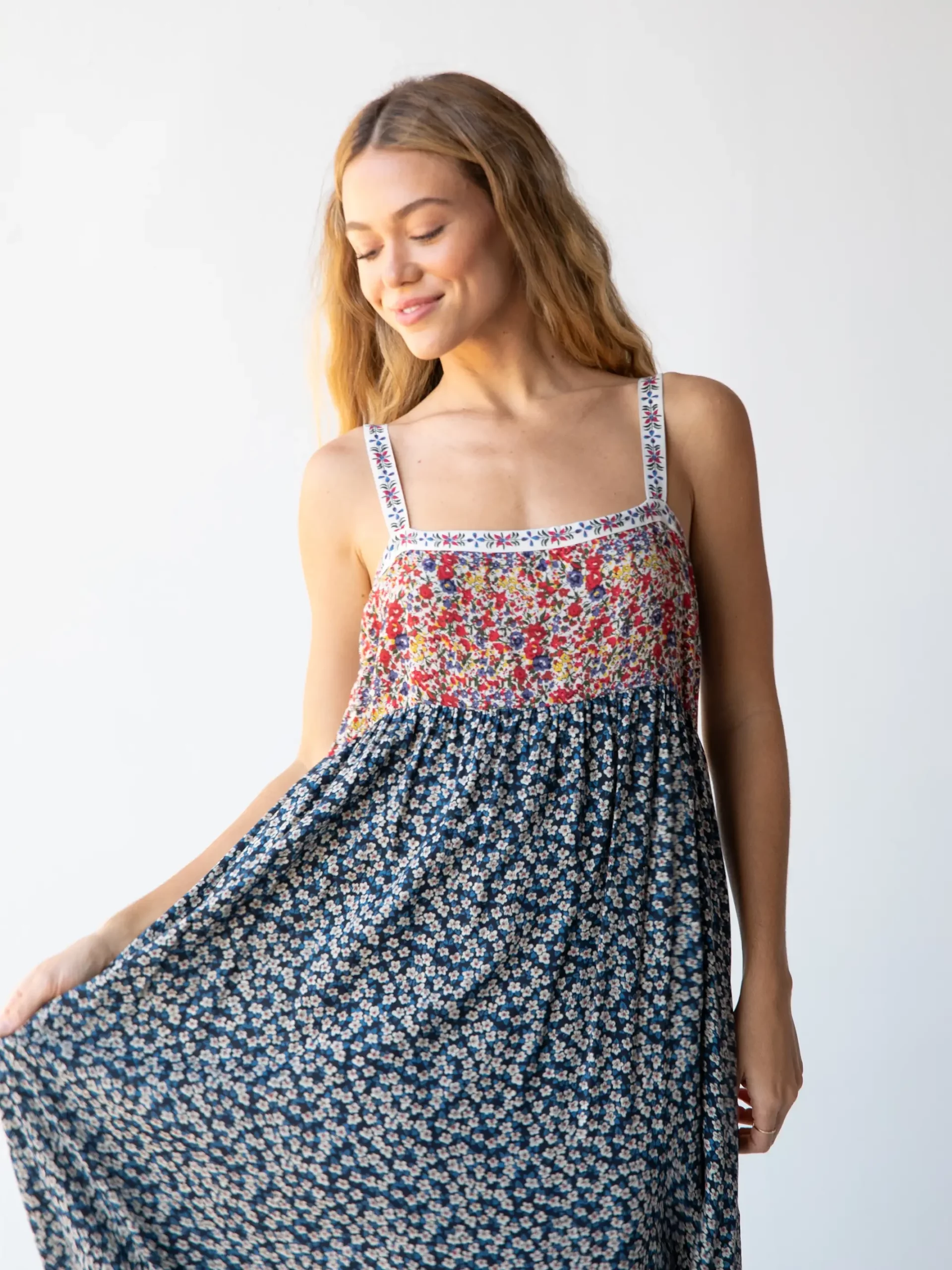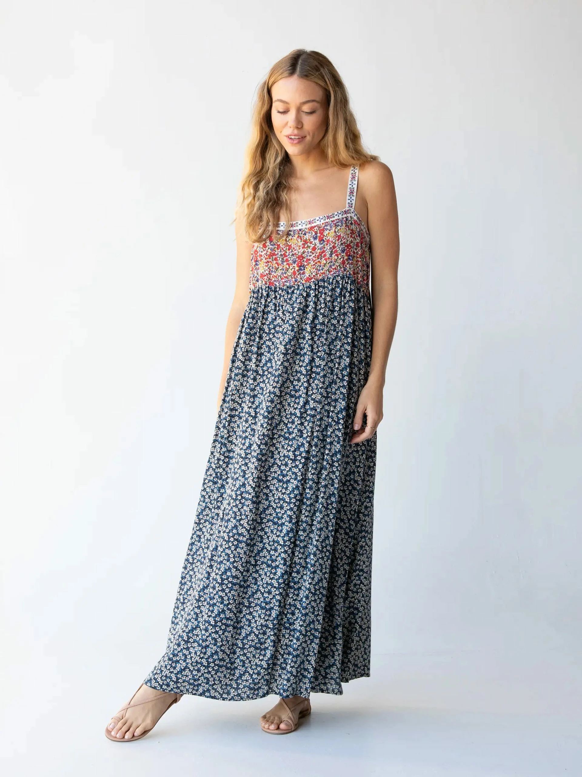 Natural Life Patti Side Slit Maxi Dress – Red Blue Calico