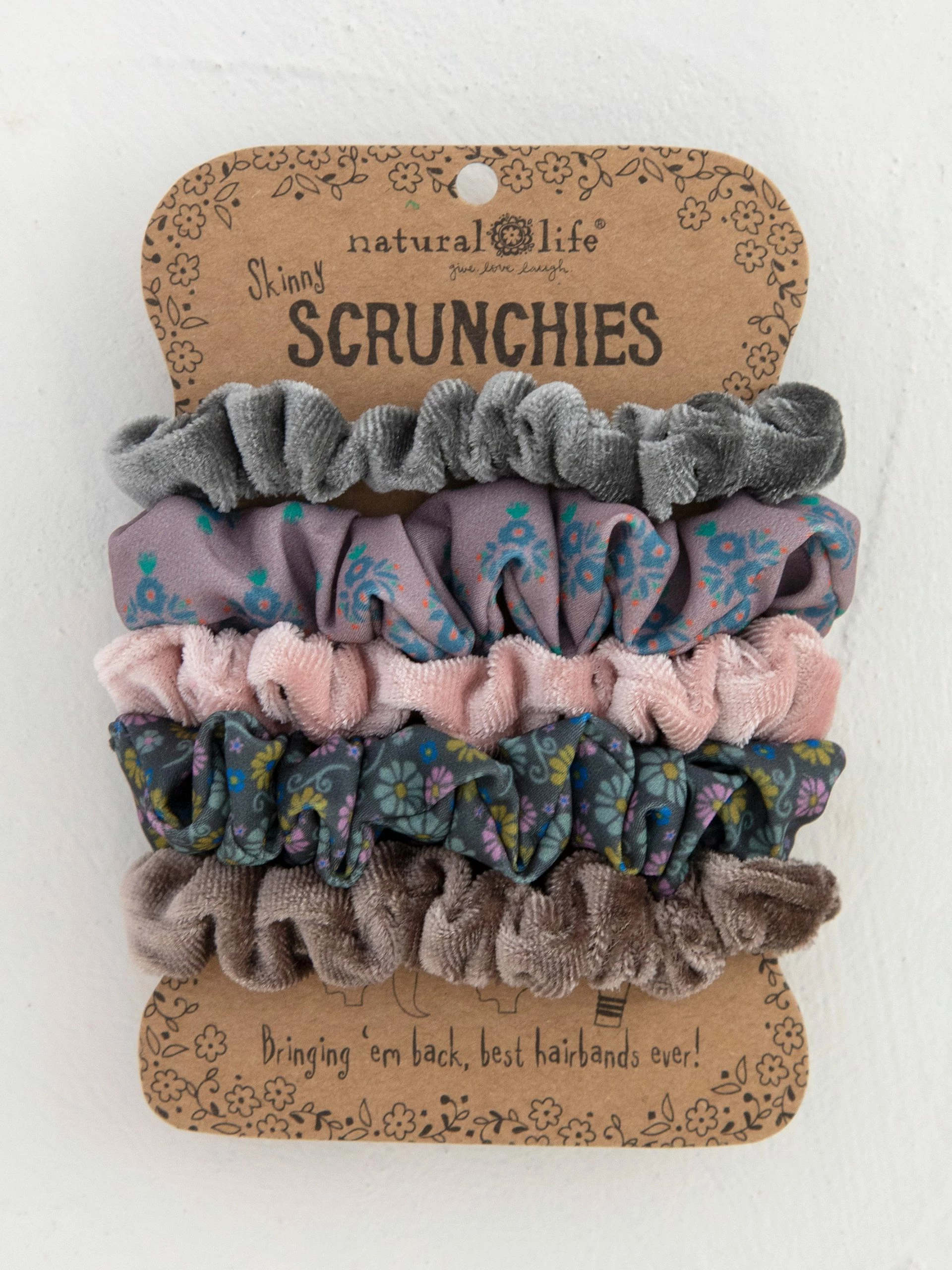 Natural Life Print And Velvet Scrunchies, Set Of 5 – Grey