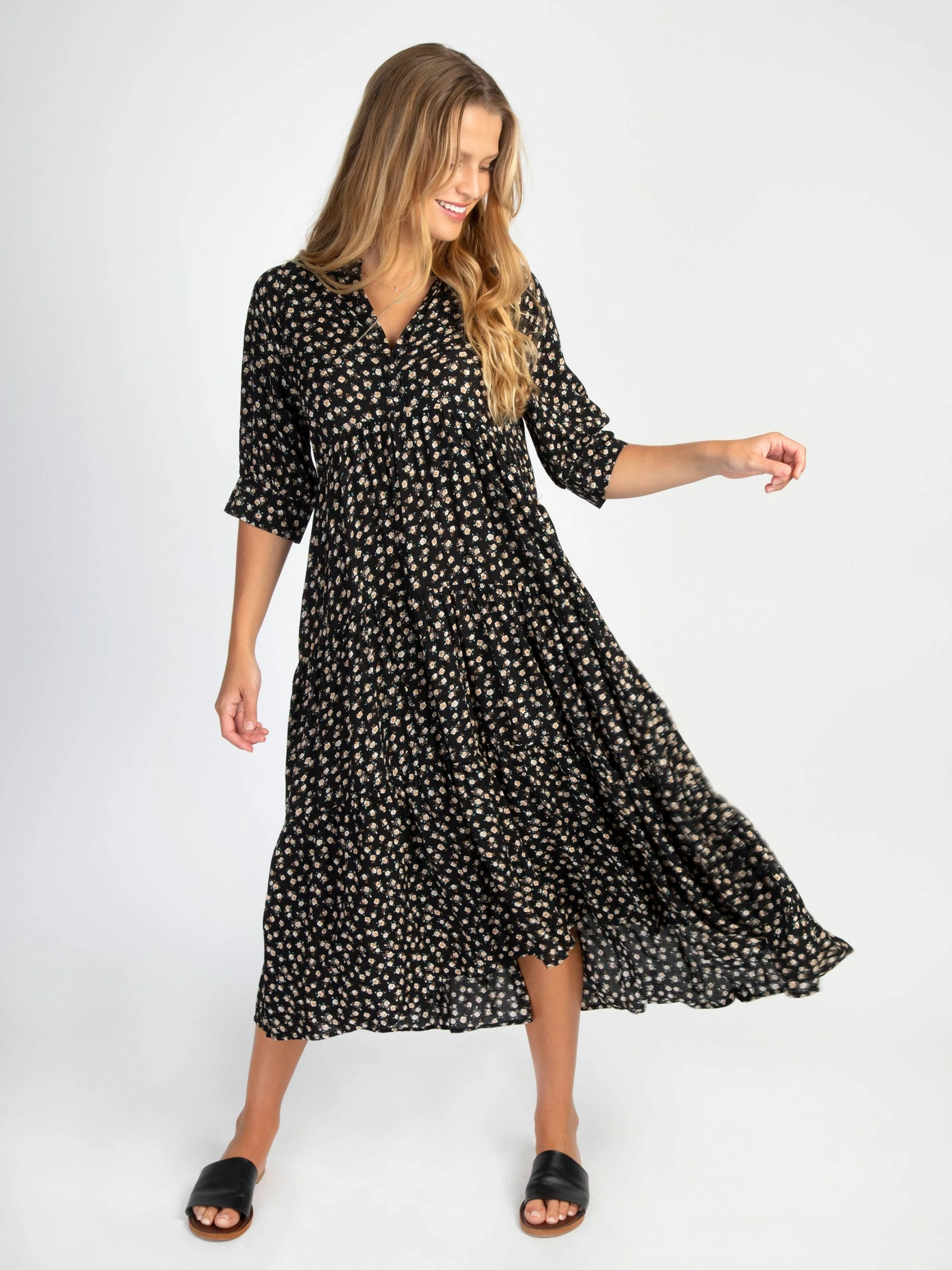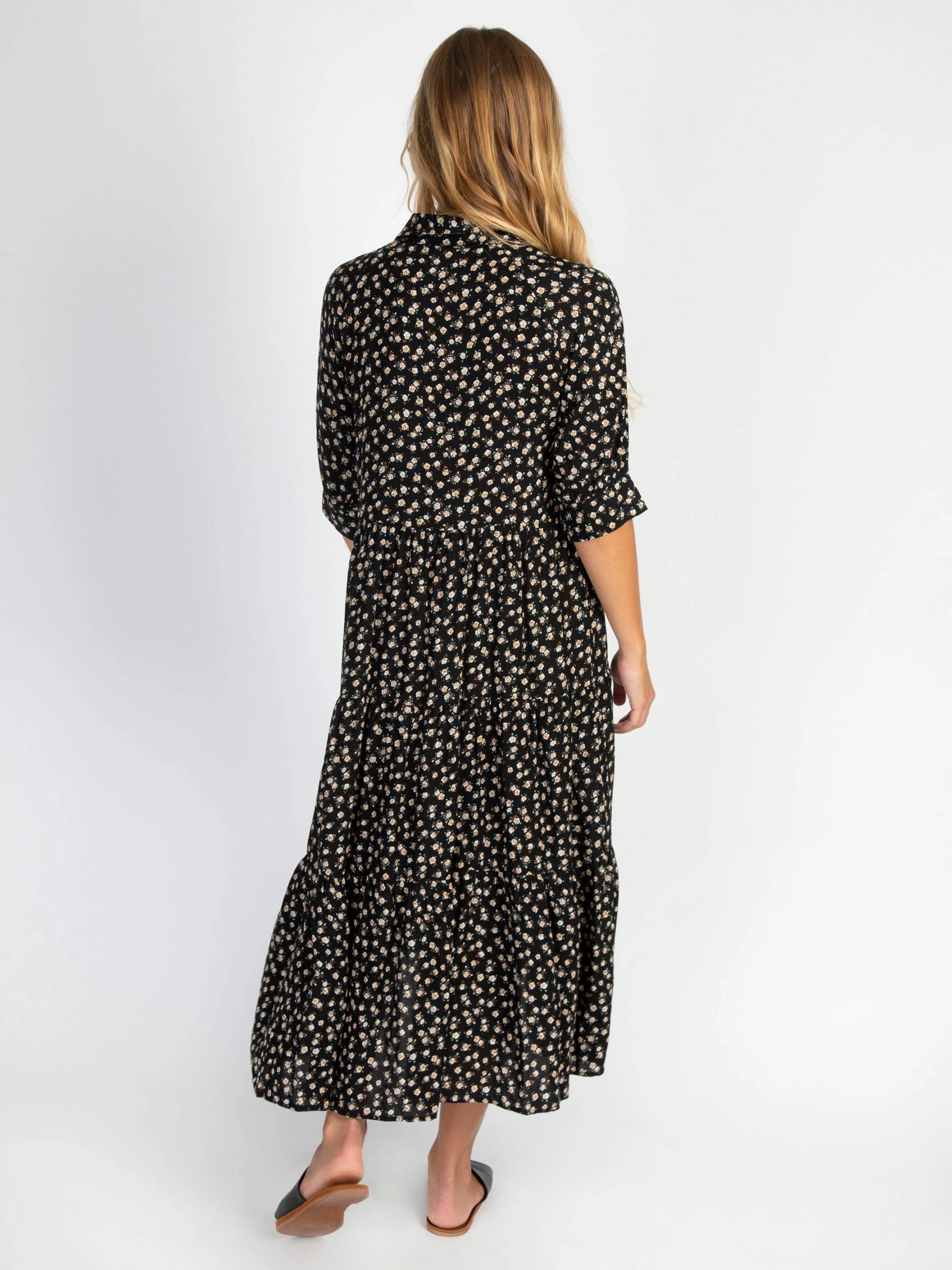 Natural Life Rebecca Tiered Dress – Black Cream Roses