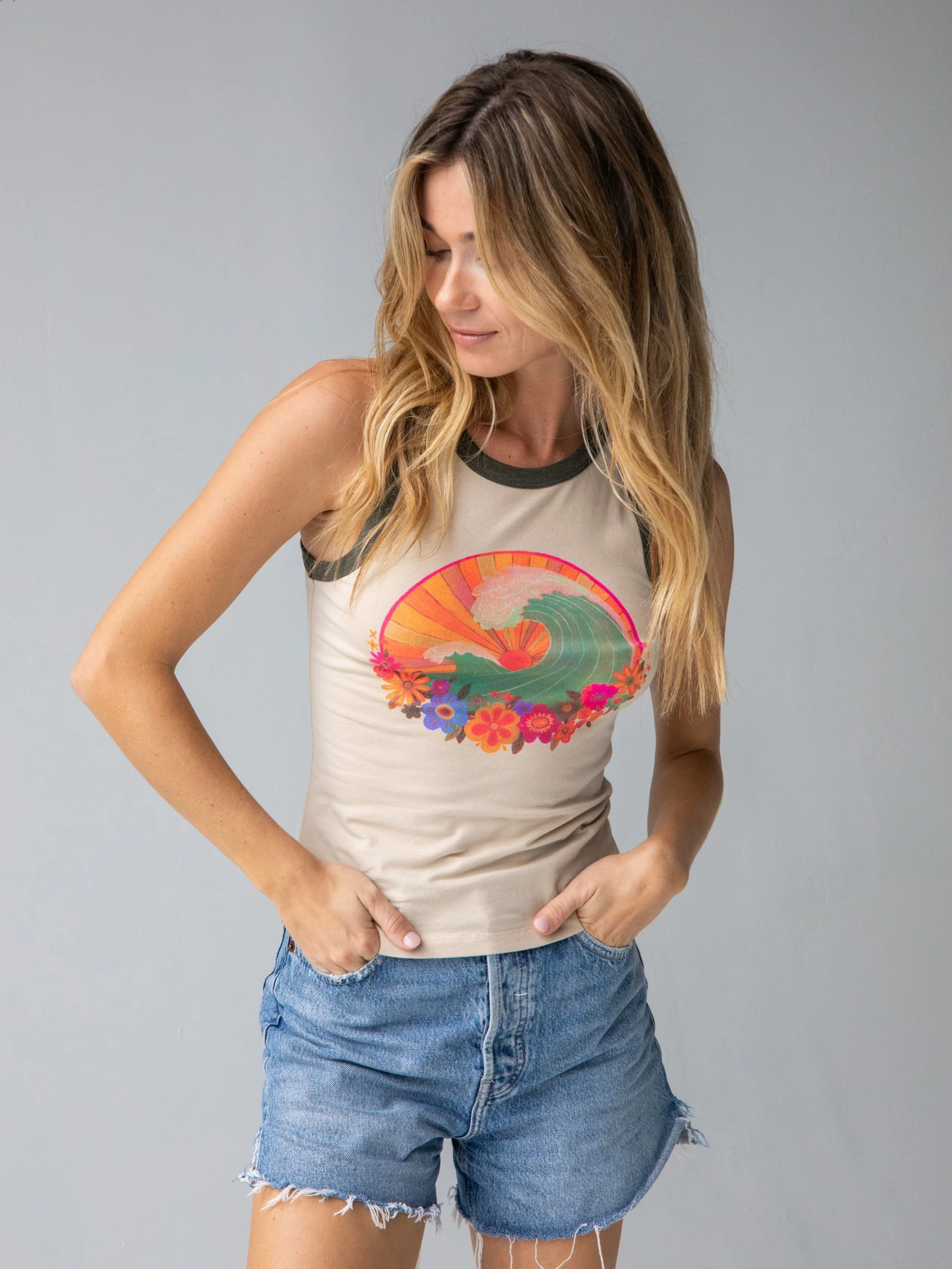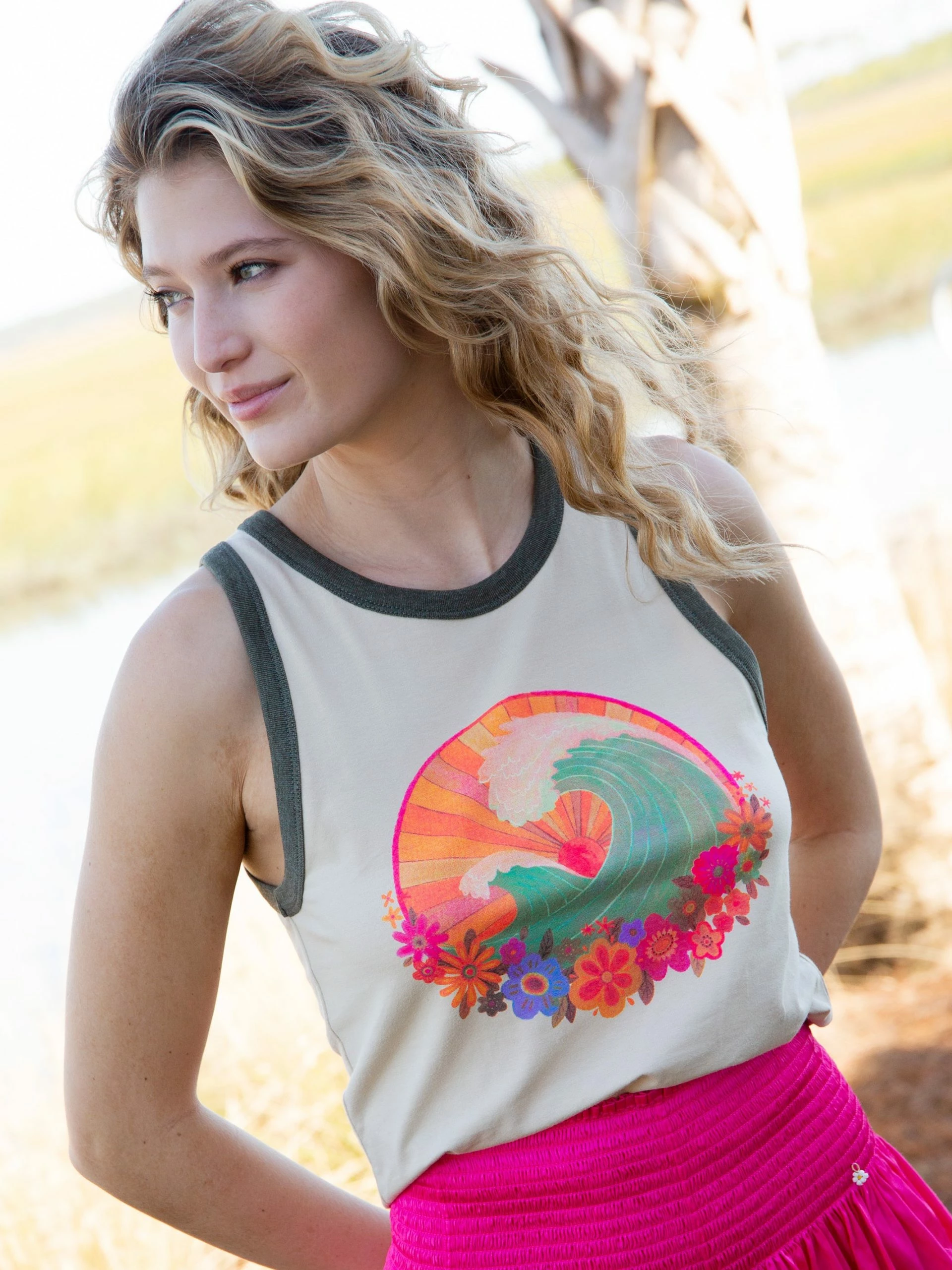 Natural Life Ringer Tank Top – Waves