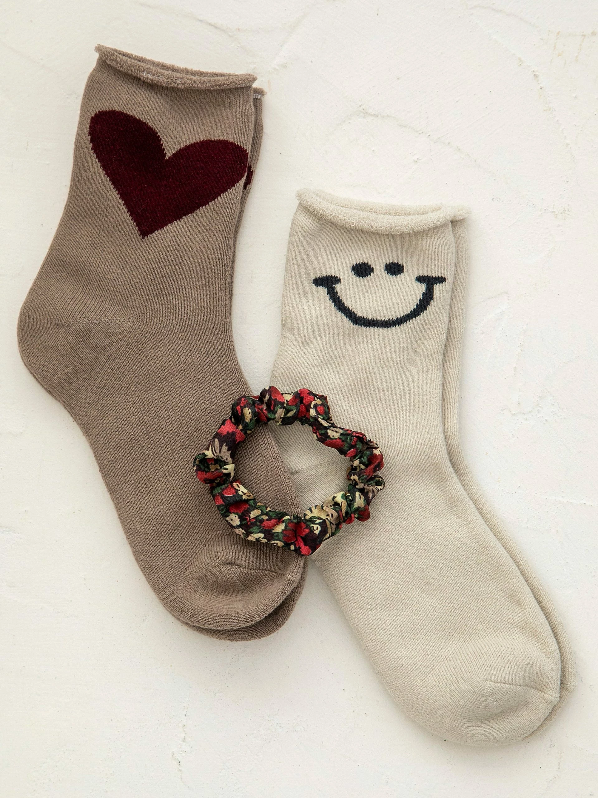 Natural Life Roll Top Socks, Set Of 2 Pairs – Heart Smile