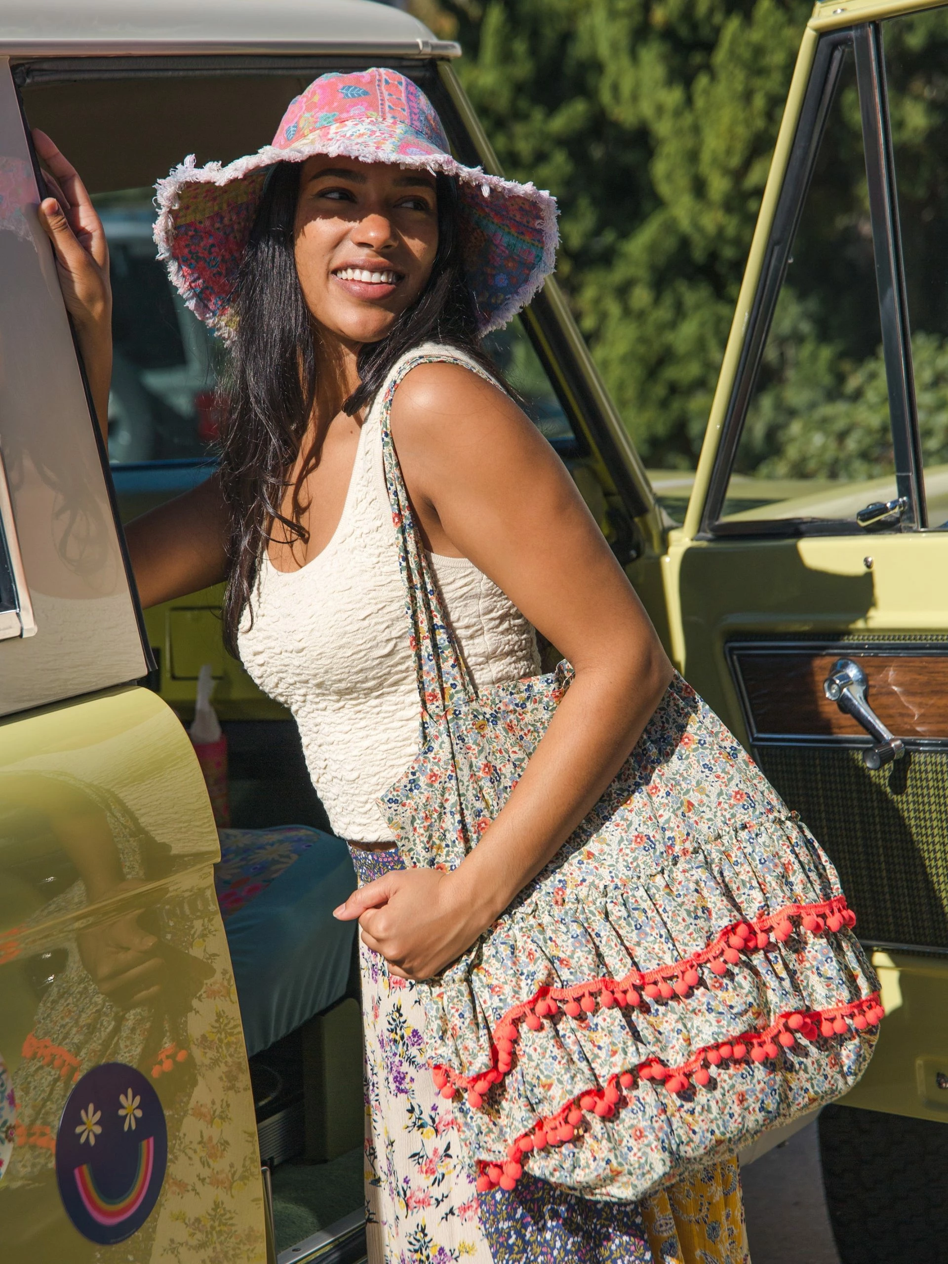The Ruffle Tote is a Natural Life classic, and we just couldn’t be without it! This lightweight two handled bag stays comfortably resting on your shoulder and the roomy interior holds anything you need and then some. The fun floral exterior will keep you smiling with the multiple layers of ruffles trimmed with contrasting pom poms. Let’s all admit that life is more fun with pom poms!! Sling it on your shoulder to carry your daily essentials or use it as a tote bag. It’s small enough to fold into a bigger tote or carry-on to bring traveling or for when you shopped a bit more than you thought. What if you spill that delicious latte on this precious purse? No worries! You can just toss it in the washer for easy clean-up! Whether you use it for a daily carry or even a beach bag, you’ll love reaching for such a cheerful tote. It makes a super fun gift, and anyone would be delighted to receive it!