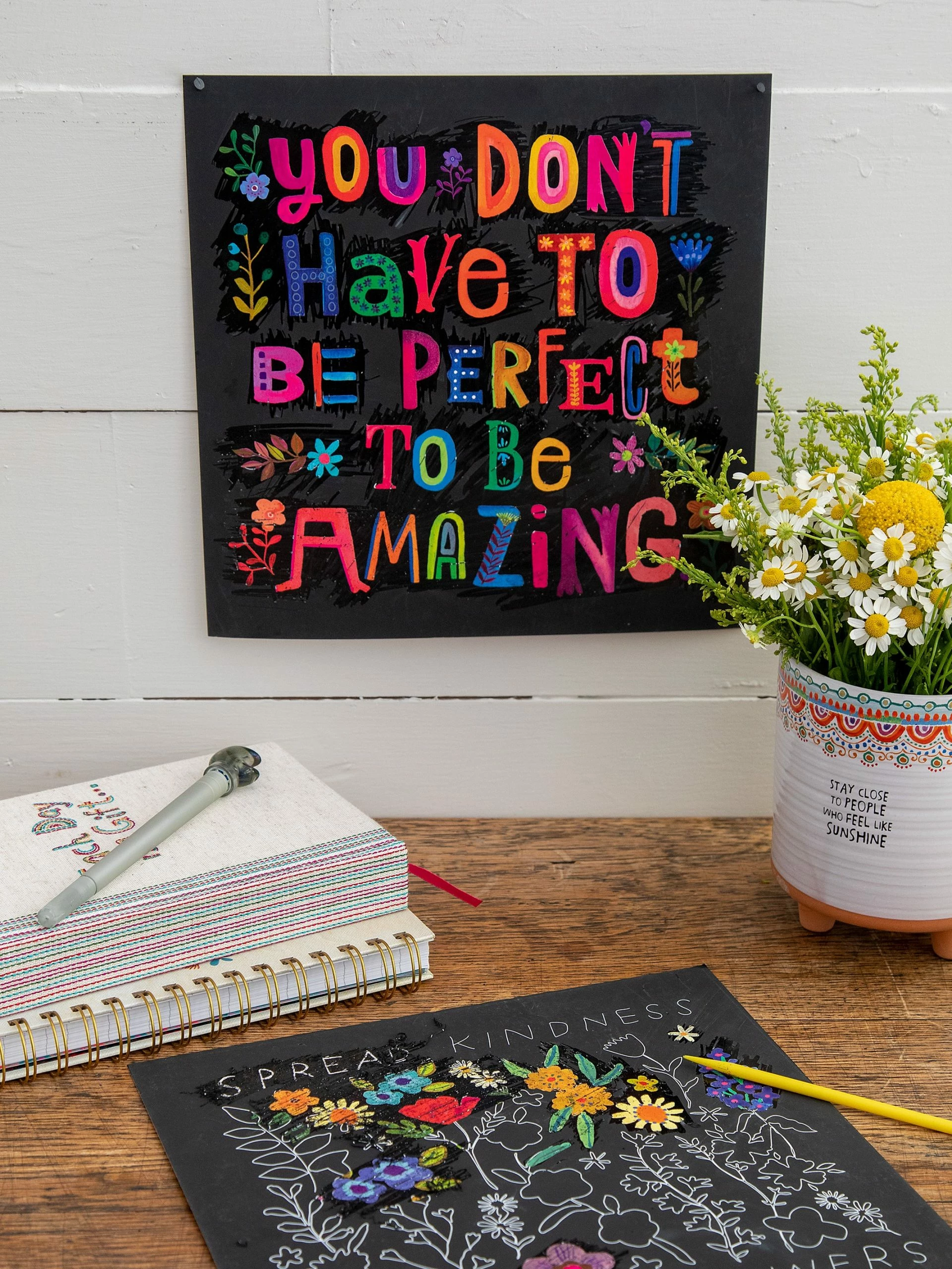 Scratch Art Poster Books are one of our favorite childhood memories… so we decided to make one! Ours features 12 pages that you can scratch away to make colorful artwork! When you’re done, the pages tear out to make keepsake wall décor! It’s so therapeutic and you don’t have to be crafty to do it! They make such a fun gift, too!