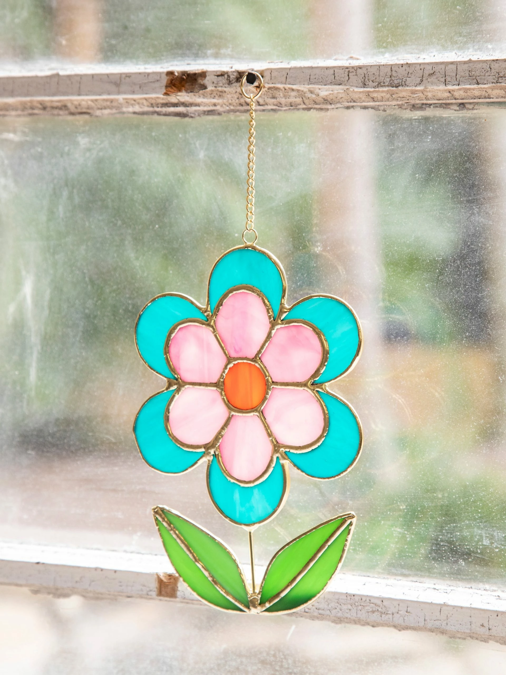 Natural Life Stained Glass Window Hanging – Retro Flower