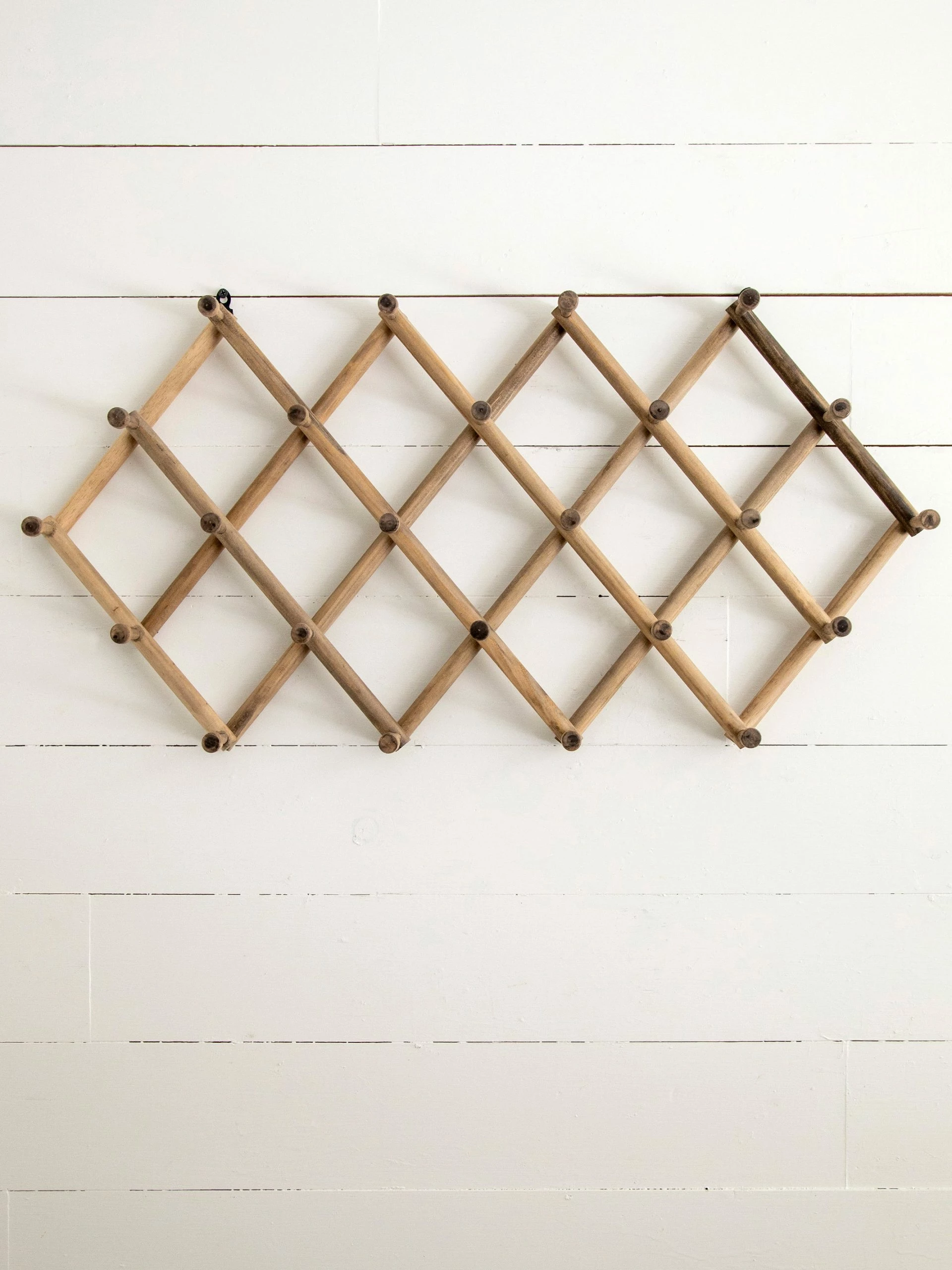 This wooden Accordion Wall Rack is perfect to hang just about anywhere! We love using it in the bedroom for scarves and jewelry, the foyer for hats, bags and keys or in the kitchen for hanging mugs… it’s even great for your dog leash! It’s expandable, so it adjusts to the size you need it to be and it’s so easy to hang!