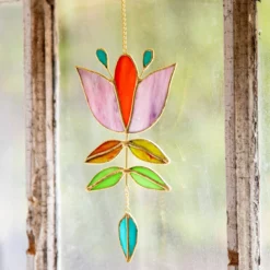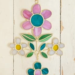 Natural Life Stained Glass Window Hanging – Large Folk Flower Cluster