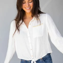Natural Life Lola Tie Button Down – White