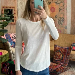 Natural Life Long Sleeve Weekend Tee Shirt – White