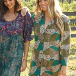 Natural Life Twiggy Mini Shirt Dress – Green Floral Patchwork