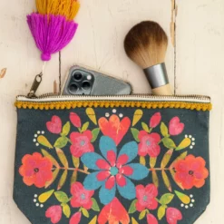 Natural Life Canvas Zip Pouch – Charcoal Folk Floral
