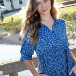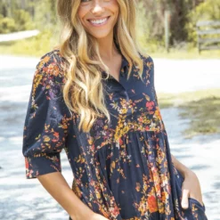 Natural Life Rebecca Tiered Dress – Navy Grey Floral