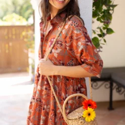Natural Life Rebecca Tiered Dress – Burnt Orange Floral