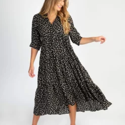 Natural Life Rebecca Tiered Dress – Black Cream Roses