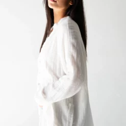 Natural Life Laid Back Button Down Top – White