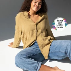 Natural Life Laid Back Button Down Top – Dark Tan