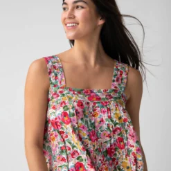 Natural Life Kate Pleated Tank Top – Bright Pink Floral