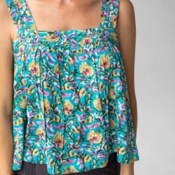 Natural Life Kate Pleated Tank Top – Turquoise Floral