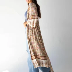 Natural Life Let’s Go West Kaftan – Dusty Rose Floral Border