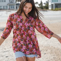 Natural Life Tunic-In-A-Bag – Pink Red Floral