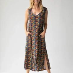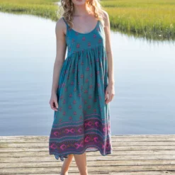 Natural Life Gigi Midi Dress – Teal Floral Border