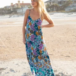 Natural Life Gracie V-Neck Slip Dress – Purple Floral