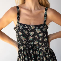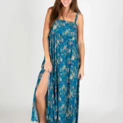 Natural Life Patti Side Slit Maxi Dress – Turquoise Cream Roses