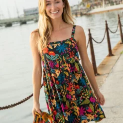 Natural Life Patti Side Slit Maxi Dress – Turquoise Orange Mixed Print