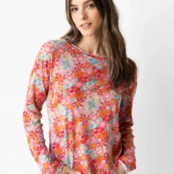 Natural Life Lily Printed Knit Long Sleeve Tee Shirt – Bright Pink Red Floral