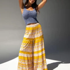 Natural Life Patti Palazzo Pant – Mustard Paisley