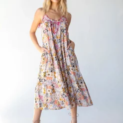 Natural Life Embroidered Harley Midi Dress – Tan Orange Floral